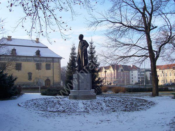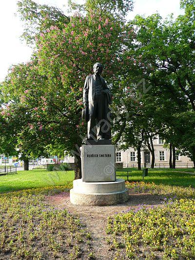 Pohled na sochu Bedřicha Smetany, v pozadí zámek.