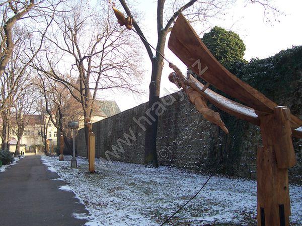 Novodobá galerie - moderní anděl u starobylých hradeb.