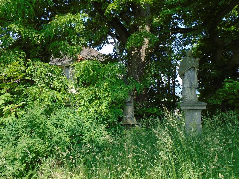 socha Immaculaty, socha sv. Jana Nepomuckého a pamětní kříž