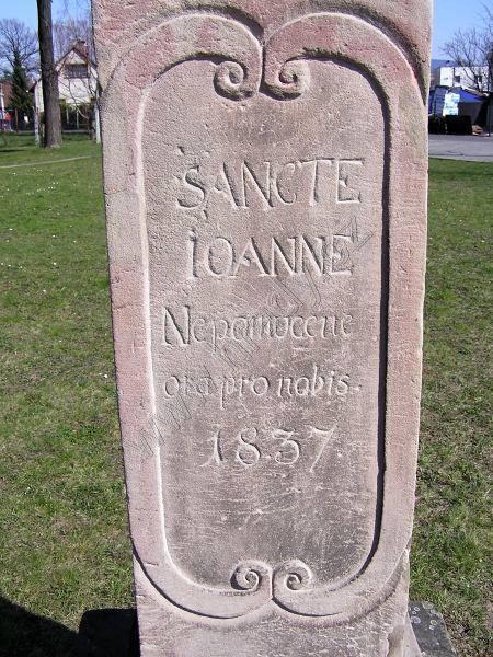 Spodní část podstavce sochy s latinským nápisem a datováním 1837