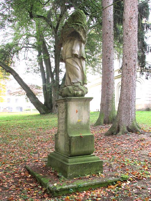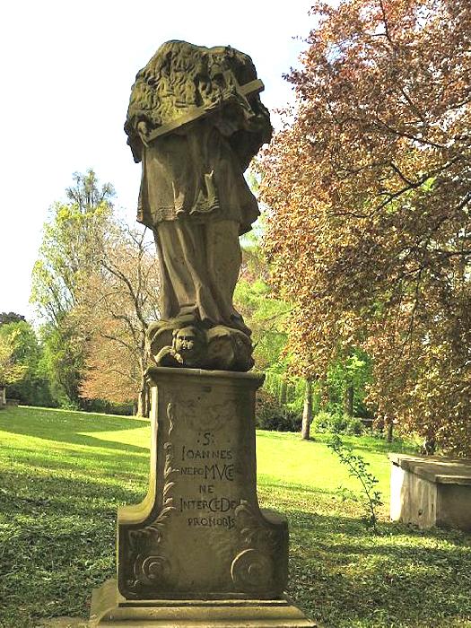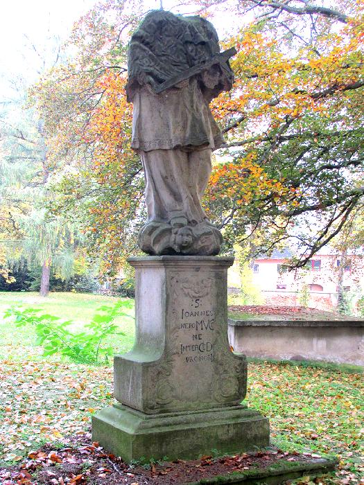 Torzo sochy sv. Jana Nepomuckého v zámeckém parku v Chudobíně u Litovle.