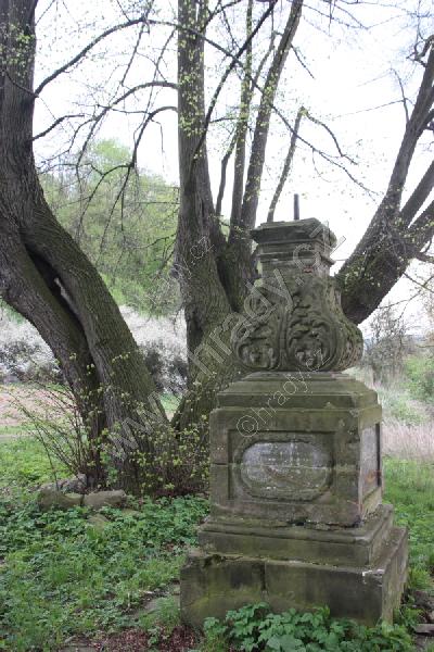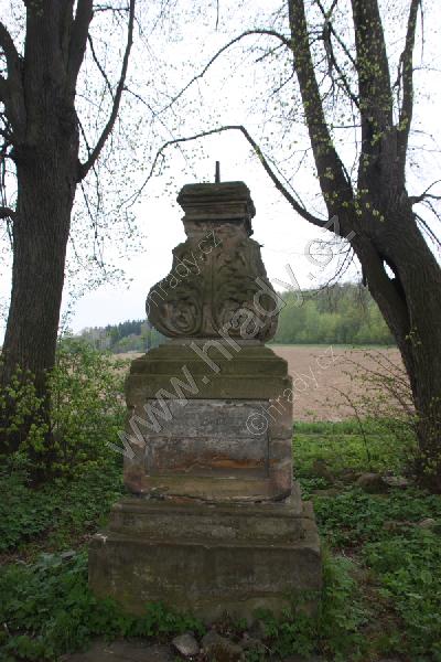 Skupina stromů s dominantní lipou v popředí, mezi nimi osiřelý podstavec