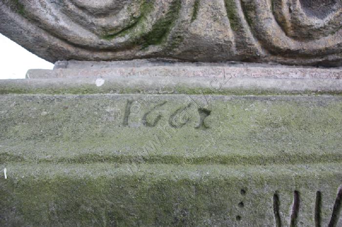 Letopočet 1662(?) na jihovýchodní římse podstavce