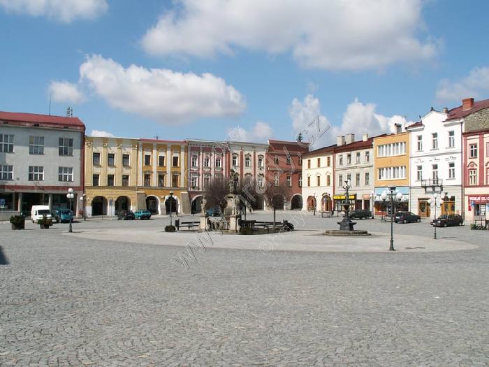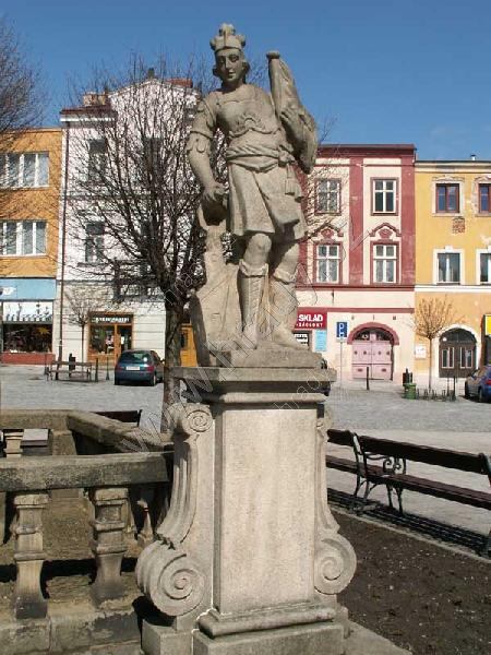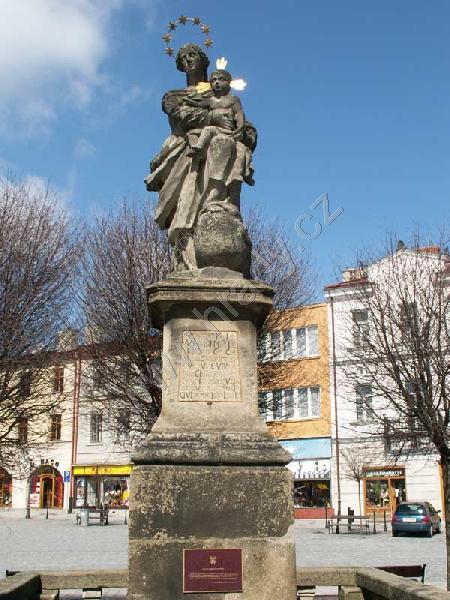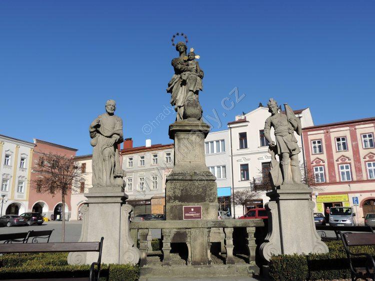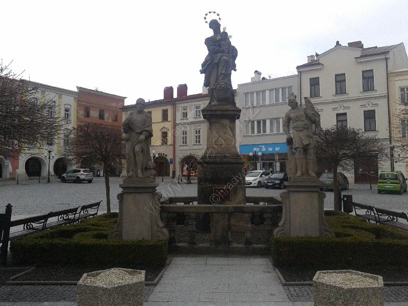 Celkový pohled na Barokní sousoší, které se nachází uprostřed Příborského náměstí
