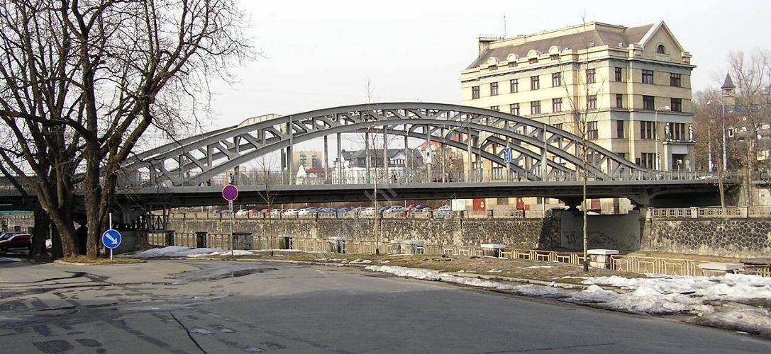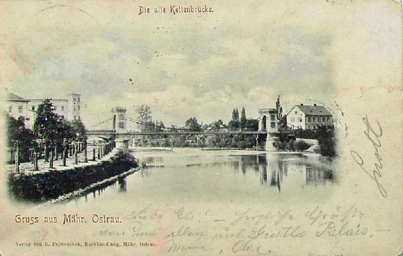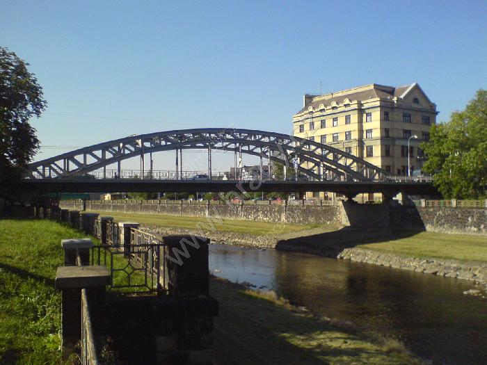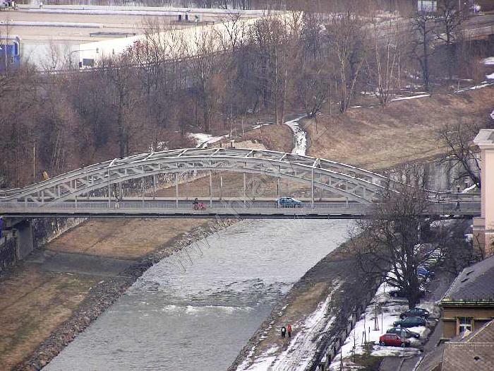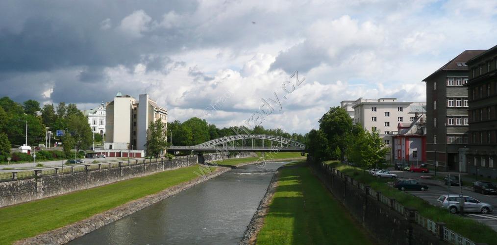Celkový pohled na Sýkorův most přes řeku Ostravici.