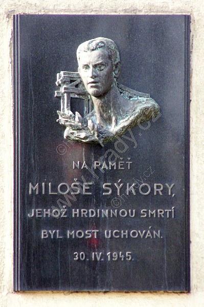 Pamětní deska na hrdinský čin Miloše Sýkory.