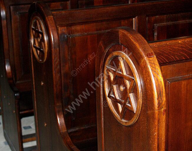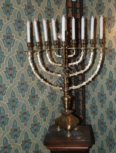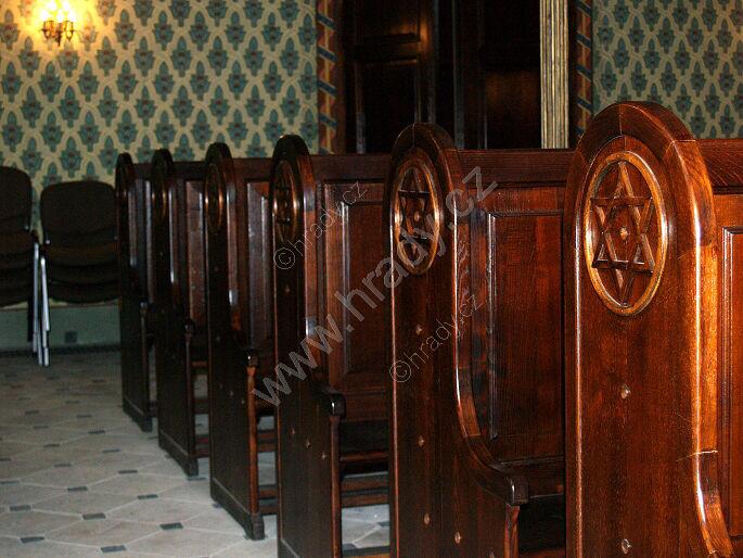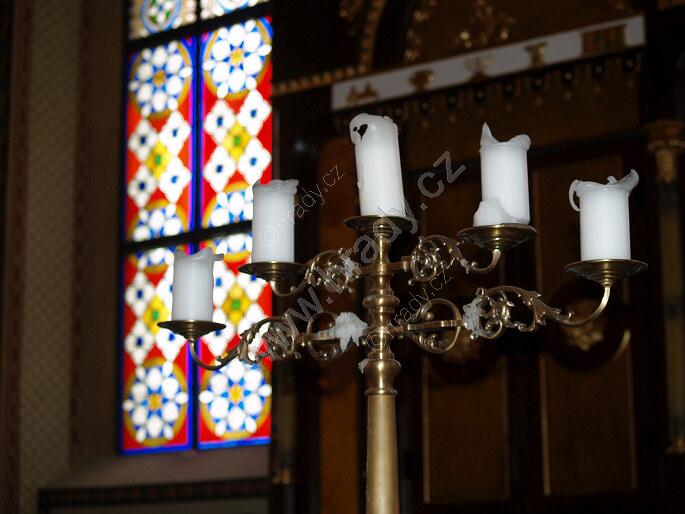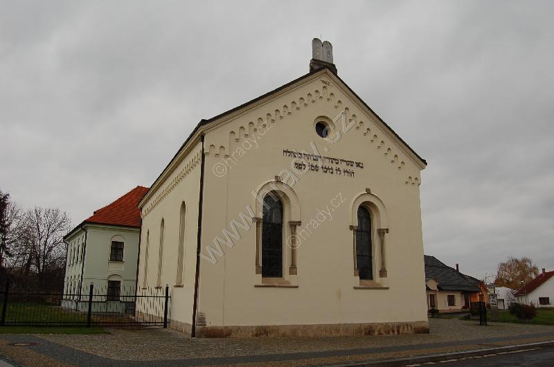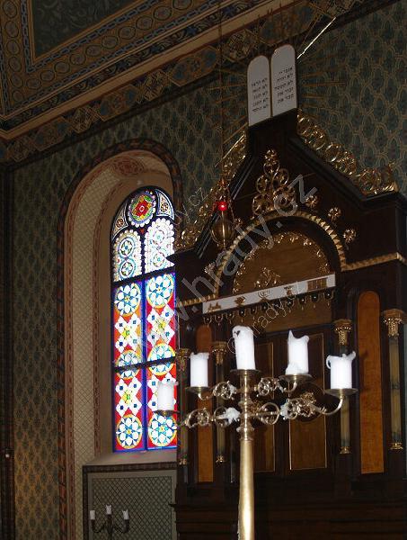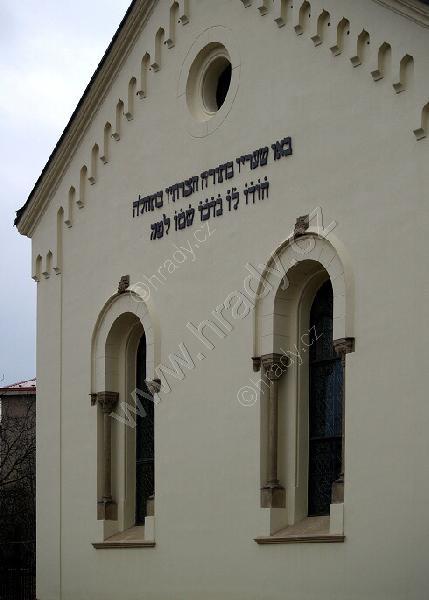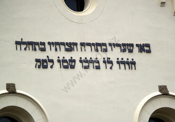 Hebrejský nápis na židovské synagoze. (Vstupujte v brány Jeho s díky, v síně Jeho s chválou, děkujme Mu, oslavujte Jeho jméno )