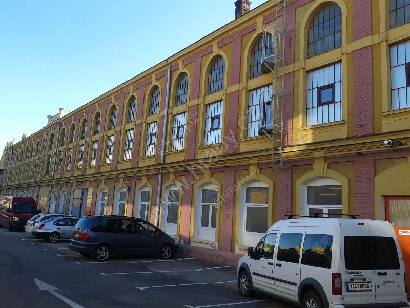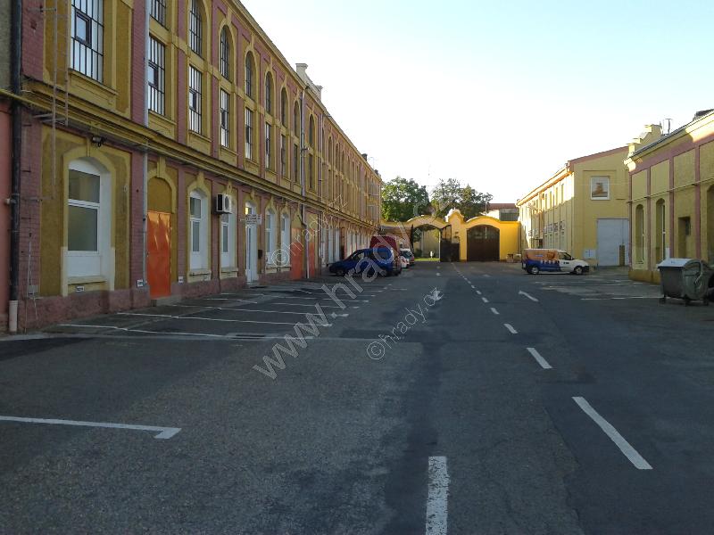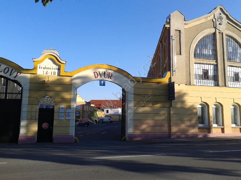 Bývalá montážní hala (vlevo) a současný Průmyslový dvůr ve Vrahovické ulici