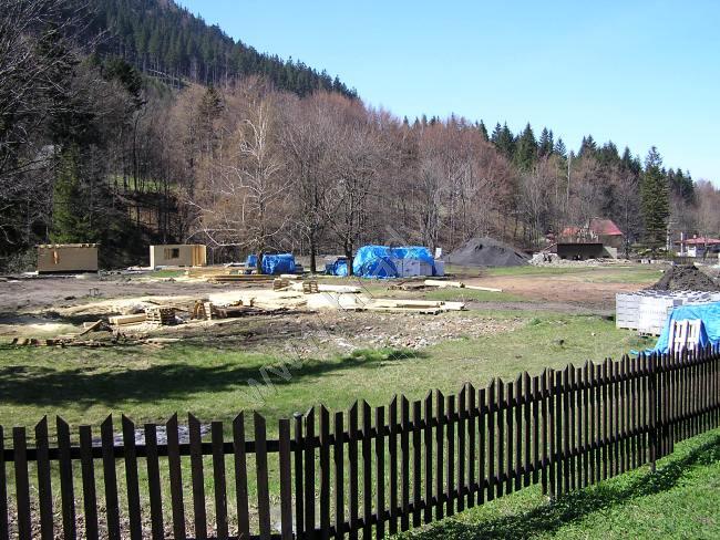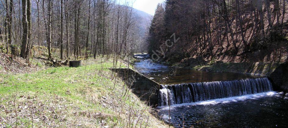 Pohled od říčky Čeladenky na vystupující základ bývalé budovy arcibiskupských hutí