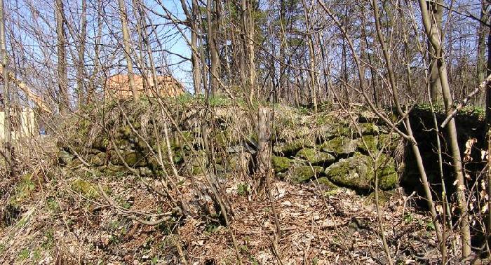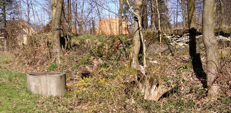 Pohled od jihu na základ ohrazení nebo jedné z budov někdejších železáren