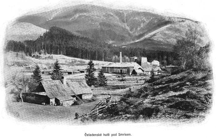Oblíbený pohled na Čeladenské hutě pod Smrkem kolem r. 1910