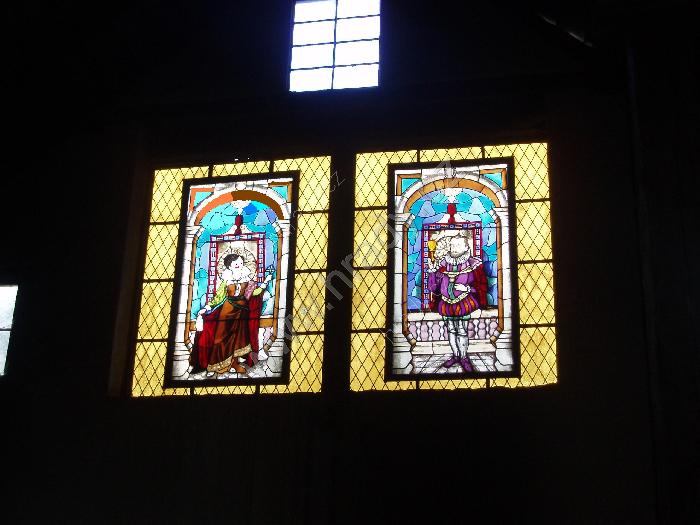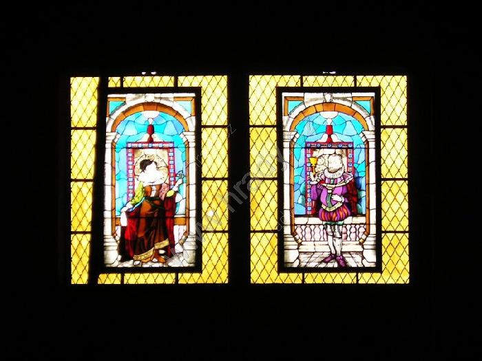 Vitrážová okna zobrazující Rudolfa II. a hraběnku Stradovou