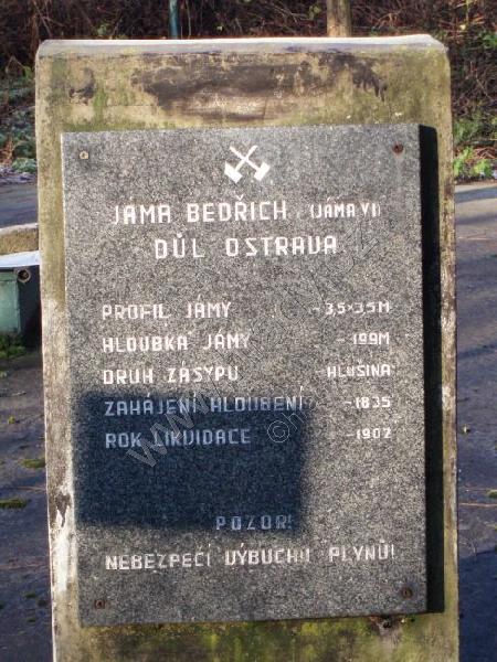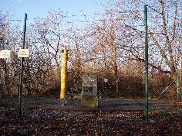 celkový pohled na betonové plato a výduch s pomníčkem na místě jámy Bedřich