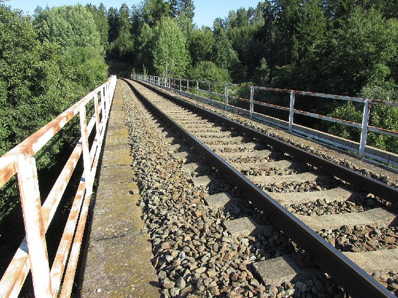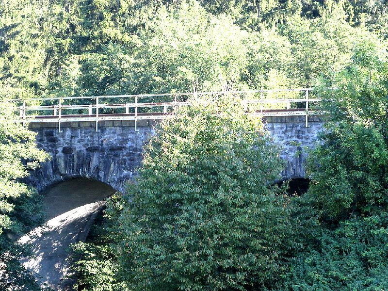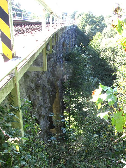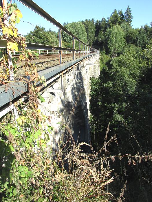 Kamenný železniční viadukt u Pořínského nádraží v okrese Tábor.