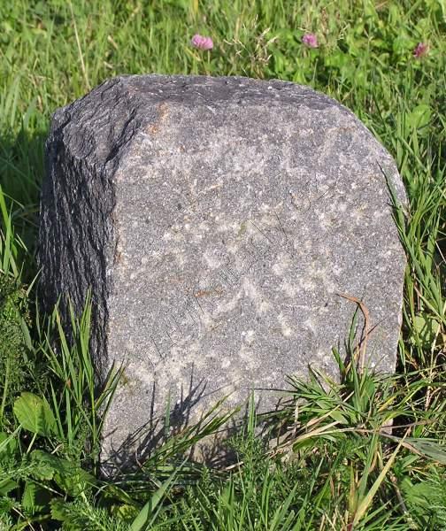 Kamenný hraniční mezník s již málo znatelnými zkříženými kladívky