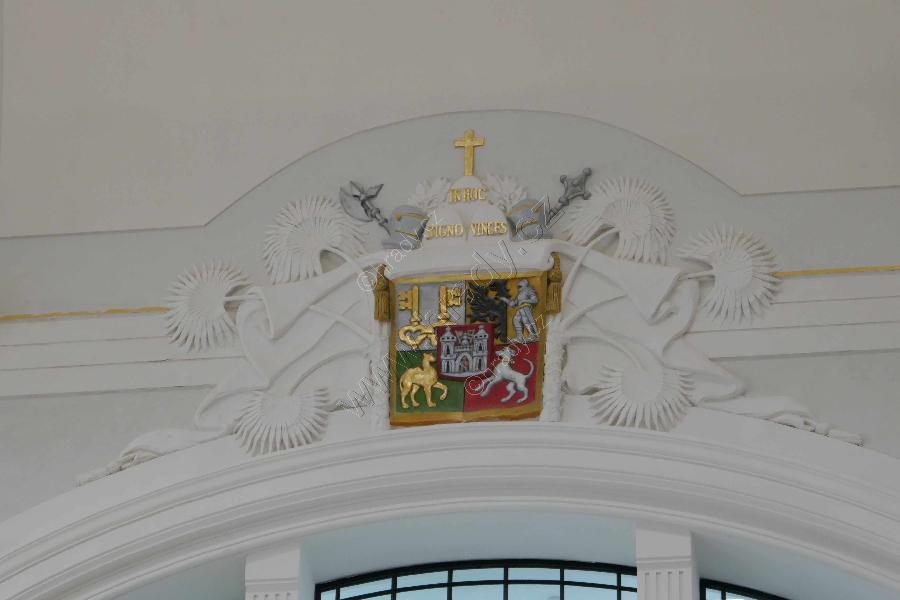Znak města Plzně ve staniční hale.