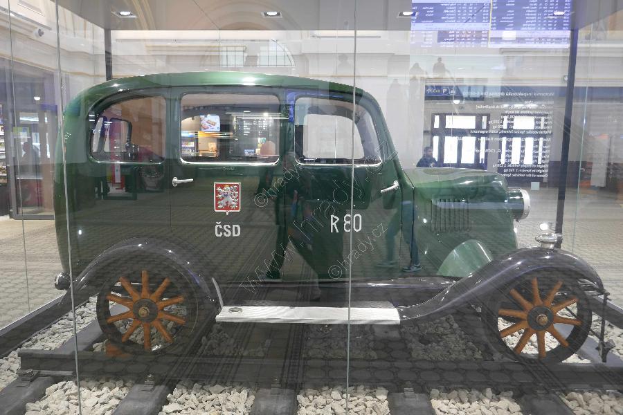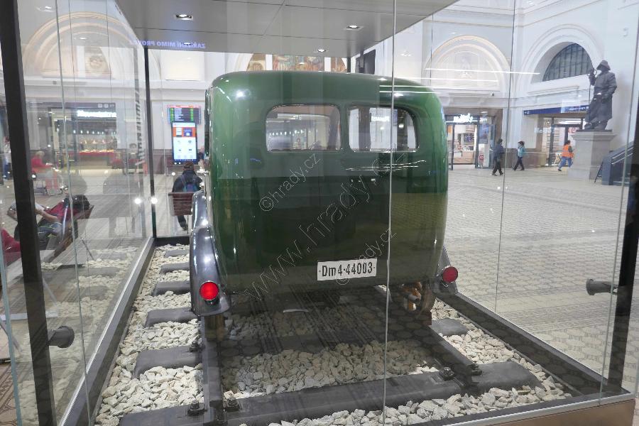 Motorová inspektorská drezína Dm 4-44003 v hale staniční budovy (1944, Tatra Kopřivnice).