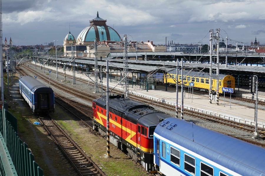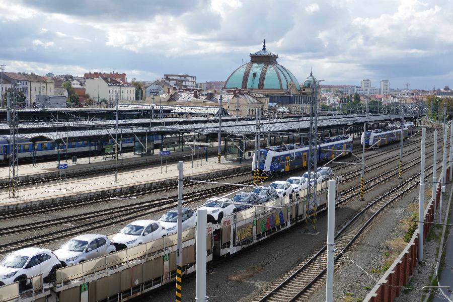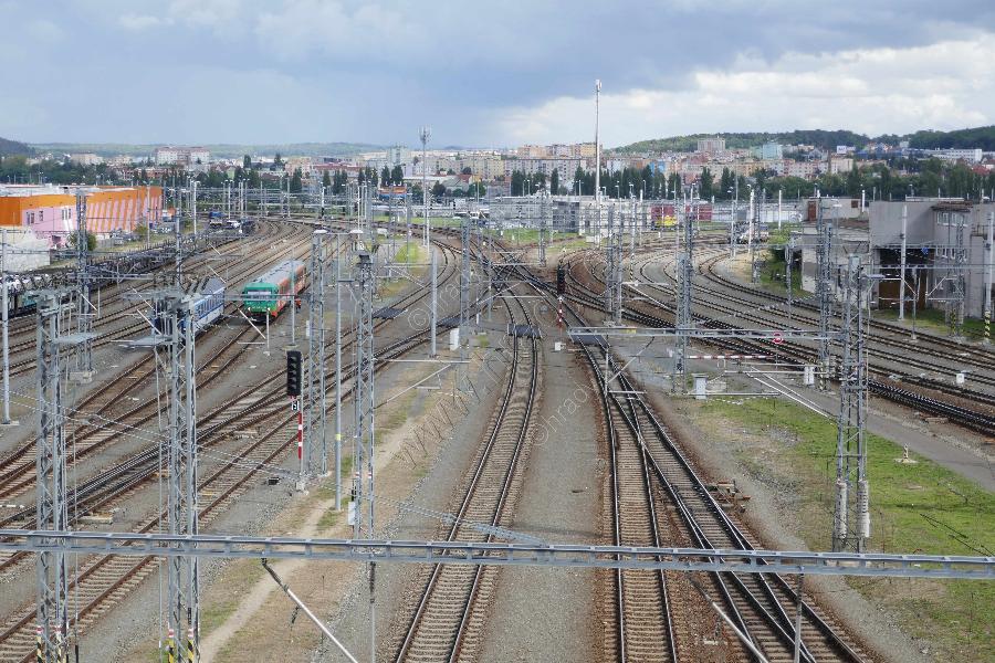 Pohled na nádraží od východu z mostu v ulici Lobezská.