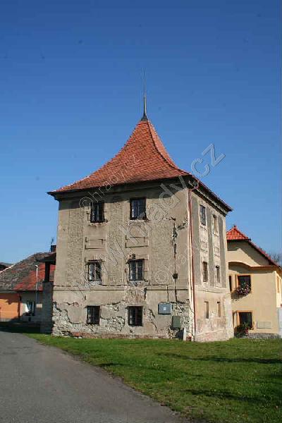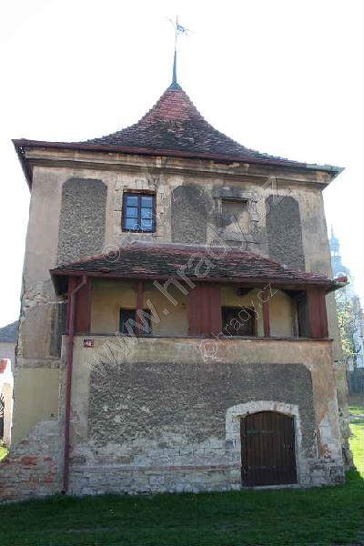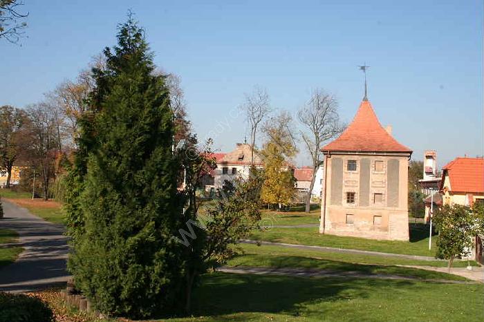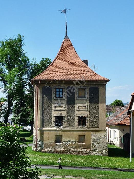 budova vodárny na návsi, barokní památka z počátku 18. století