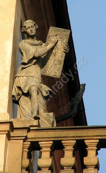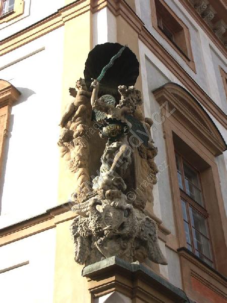plastika na nároží Hradčanského náměstí a Loretánské ulice
