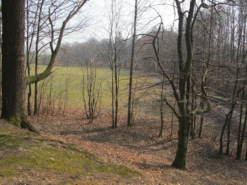 Panorama prostoru bývalého příkopu na východní straně jádra tvrziště