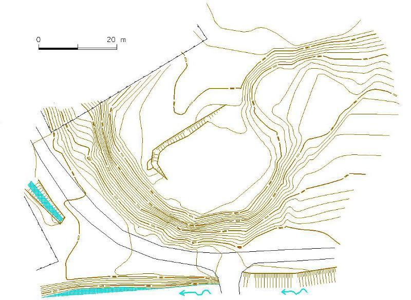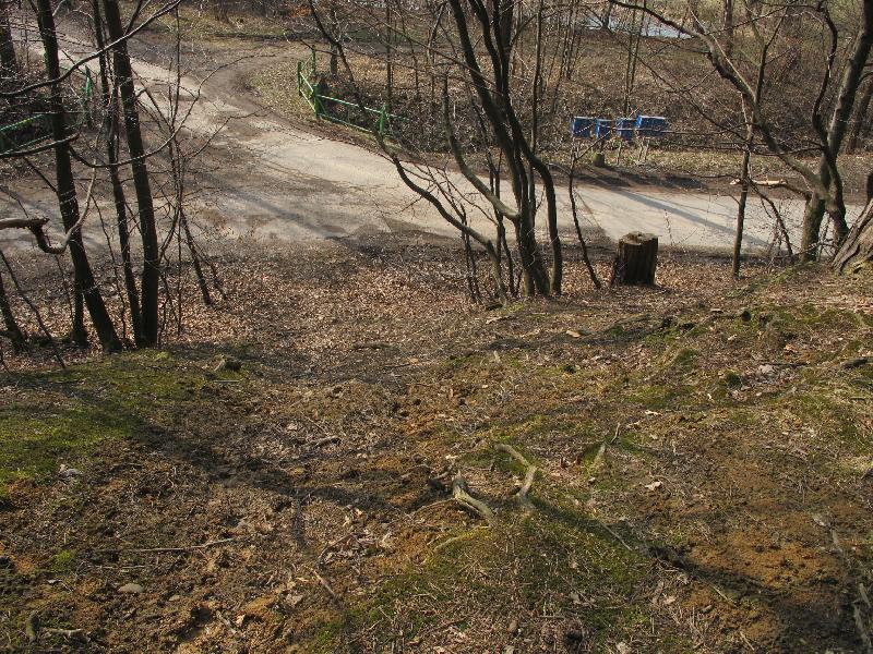 plocha tvrziště s viditelnou hranou po již nepoužívaném hřišti