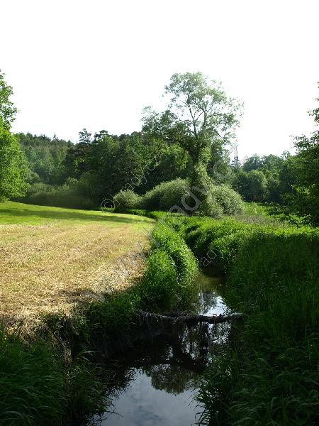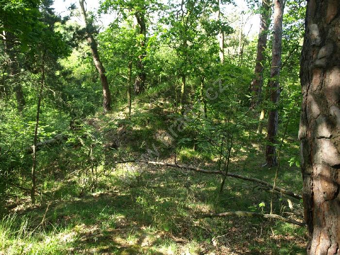 údolí Bílinského potoka - tvrziště ukrývá zarostlá ostrožna uprostřed snímku