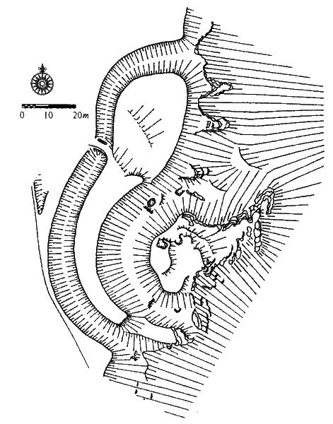Prohlubeň na pahorku tvrze.