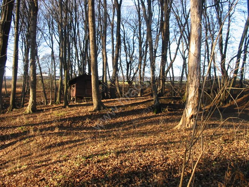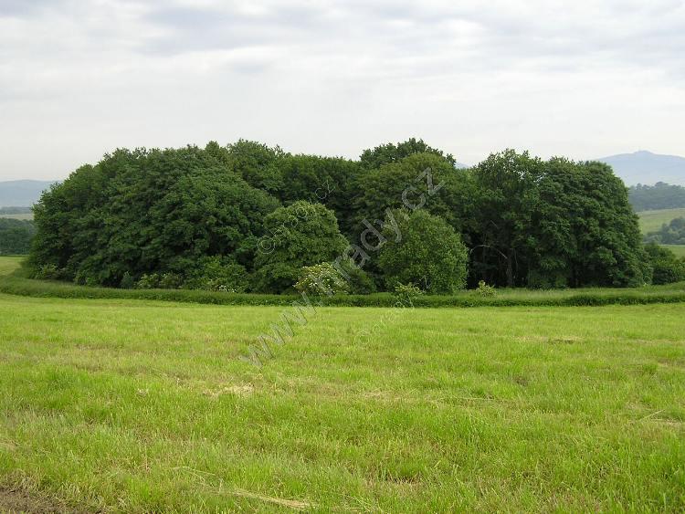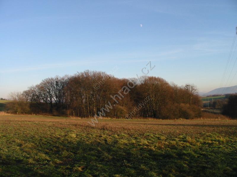 Celkový pohled na lesík ukrývající hrádek od severozápadu