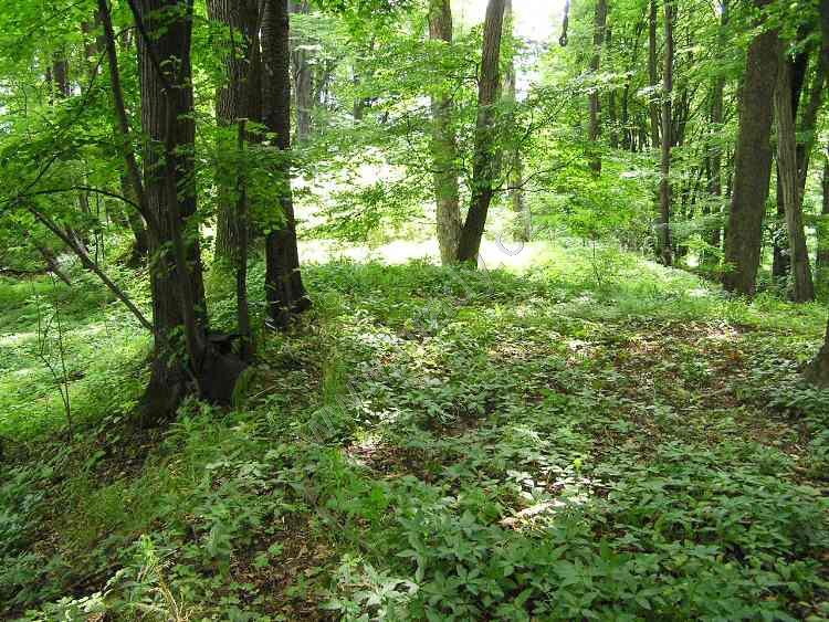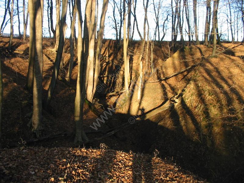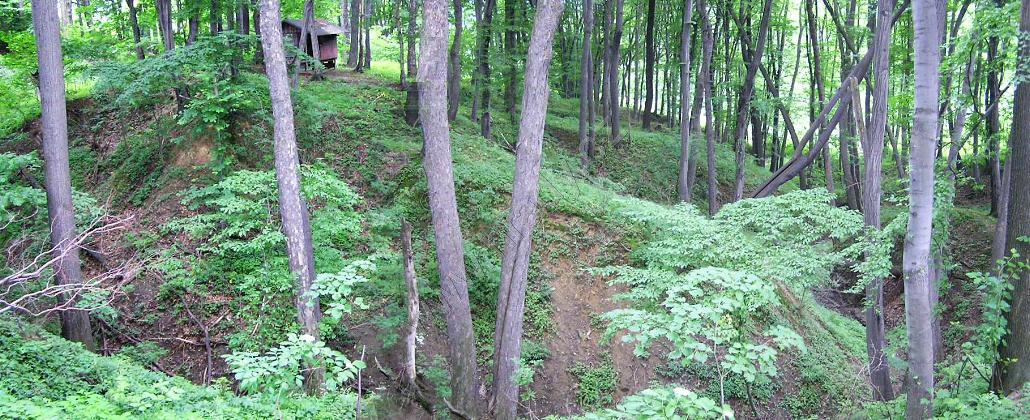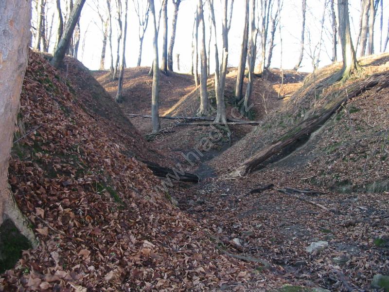 pohled na lokalitu,prošpikovanou celou řadou přirozených příkopů a strží
