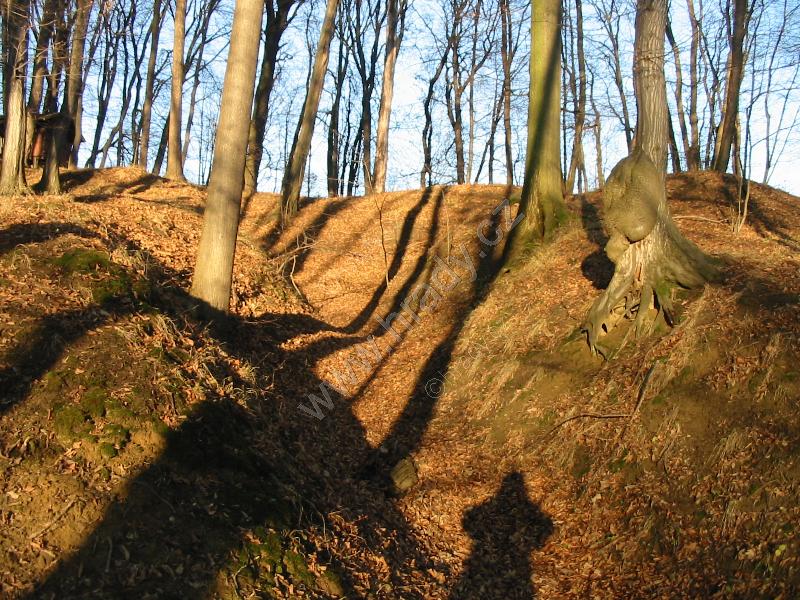 znatelná východní a severní hrana jádra hrádku