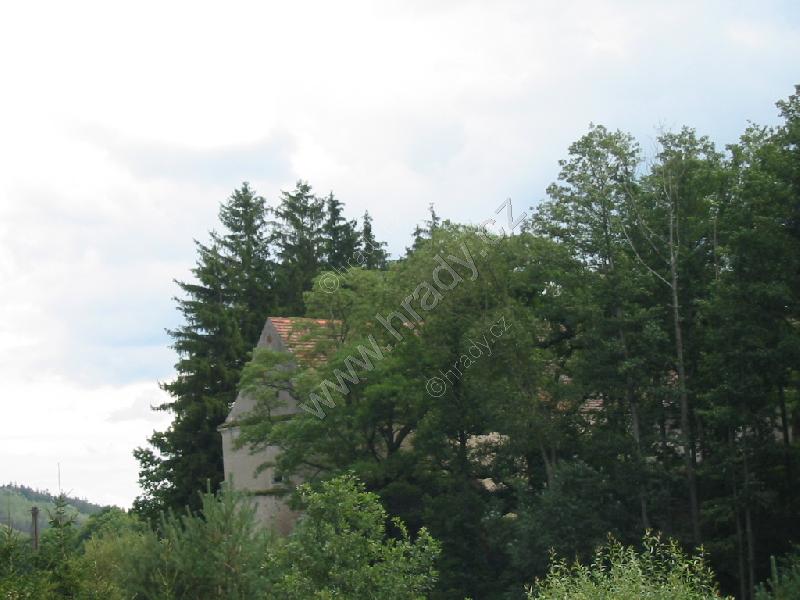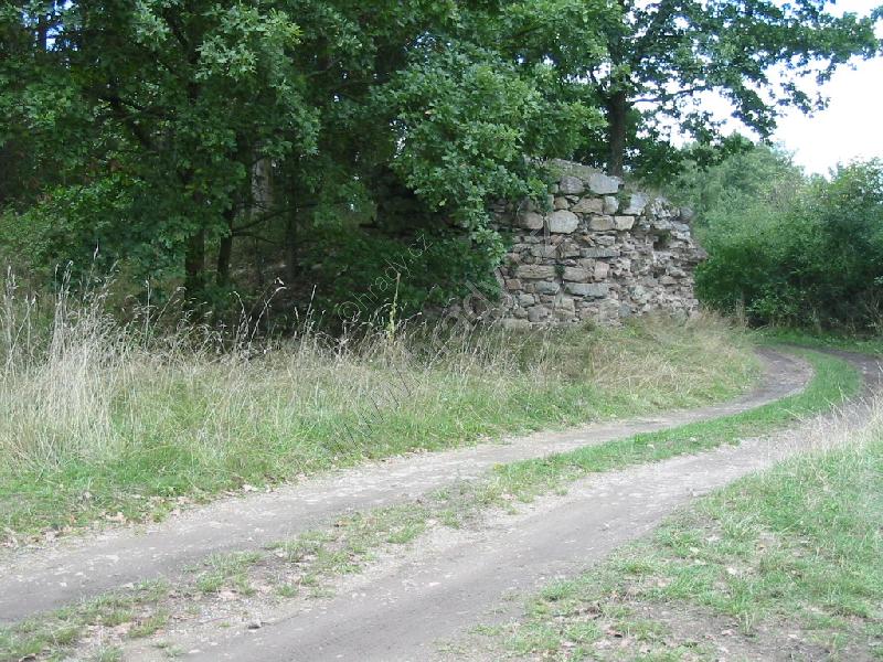 zbytek zřejmě hospodářských budov uvnitř areálu tvrze