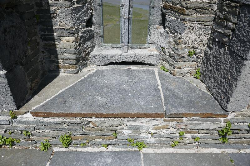 Okno ve velkém sále v nejvyšším patře domu. Pod oknem je škvíra k odtoku kapalného odpadu. Pánové si zde mohli odlehčovat přímo, dámy za použití nočníku.