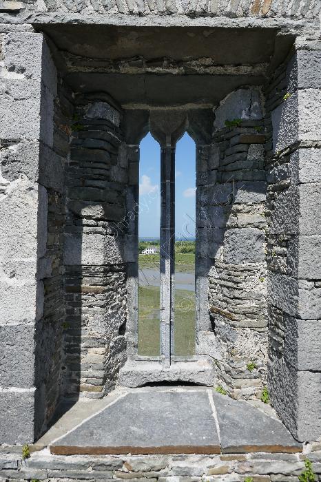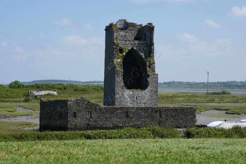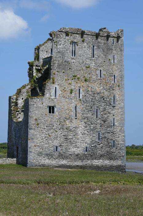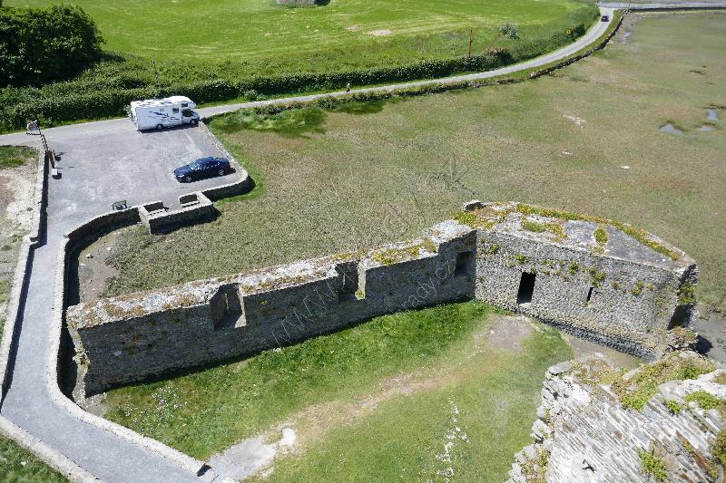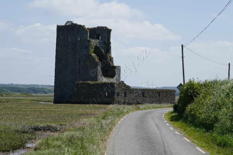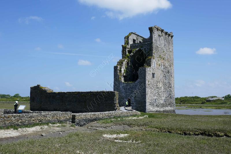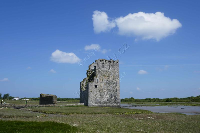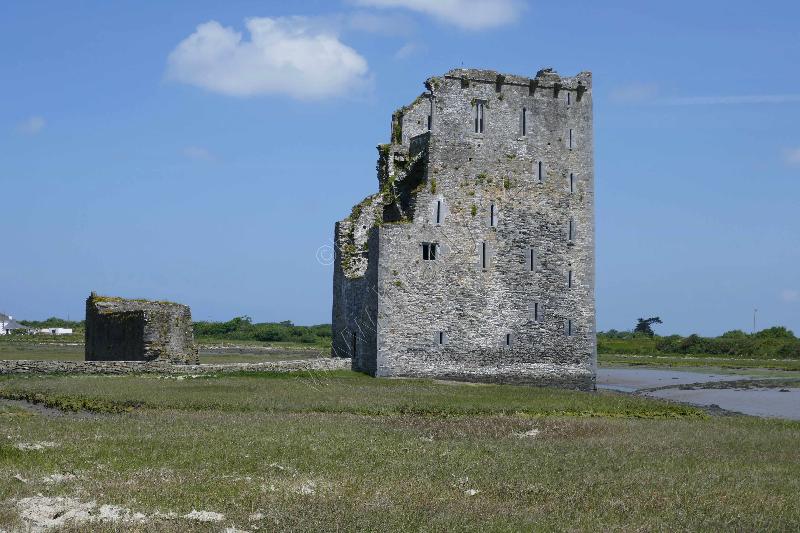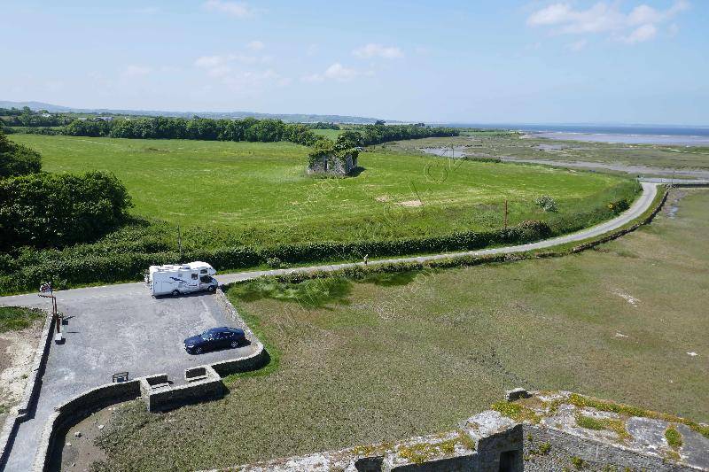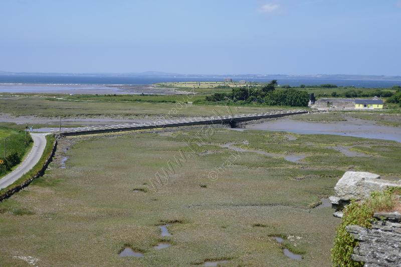 Pohled z tvrze k SZ na pobřežní mělčiny a na silnici na ostrov Carrig.