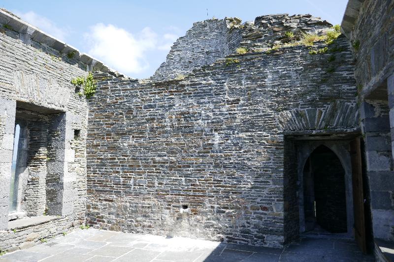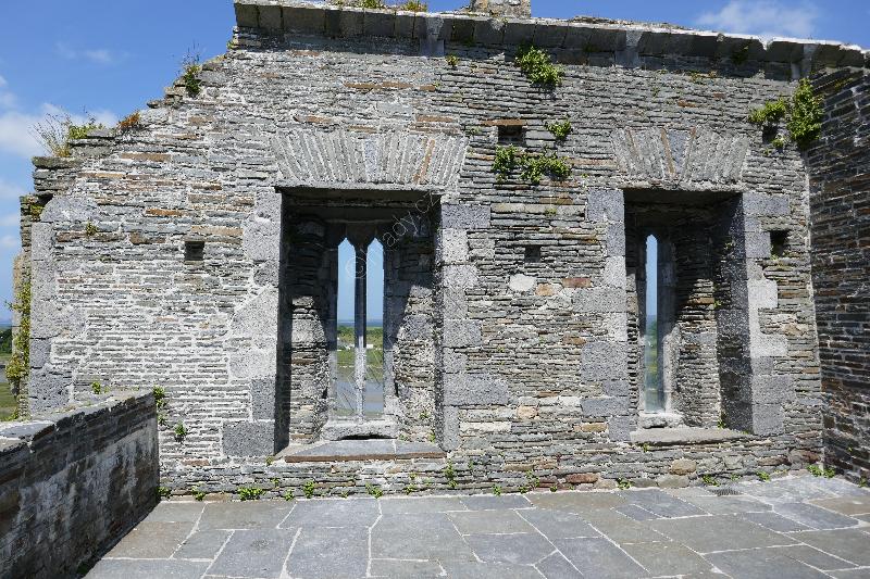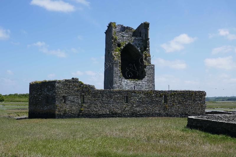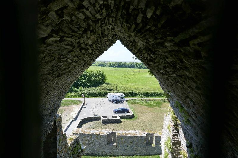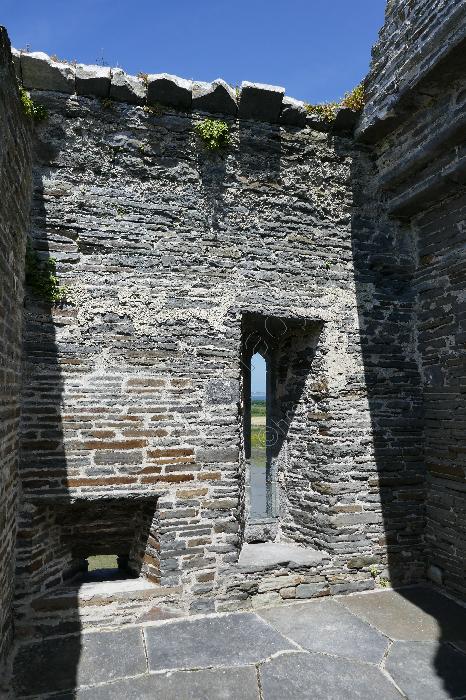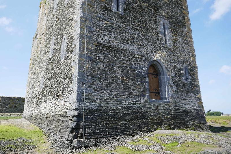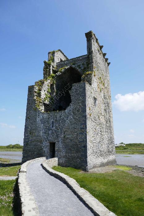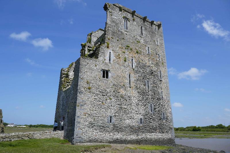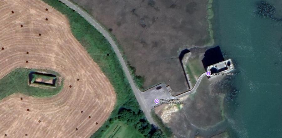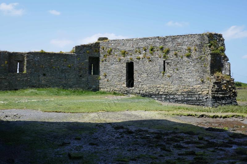 Pohled z tvrze k SZ na pobřežní mělčiny a na silnici na ostrov Carrig.