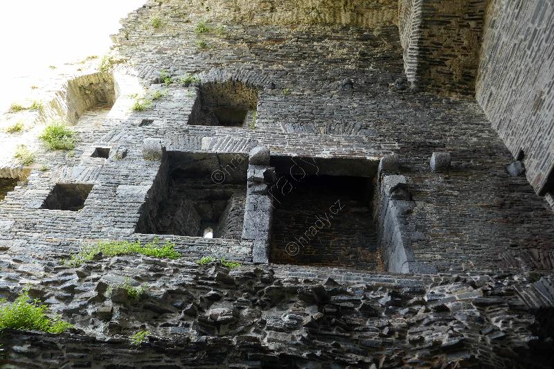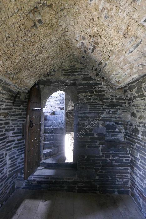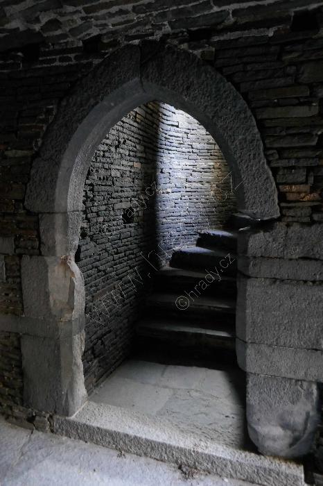 Skrýš (trezor) ve třetím patře mezi klenbou a vnější zdí věžového domu.