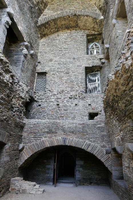Přízemí a první patro (pod klenbou) věžového domu. Pohled k západu.