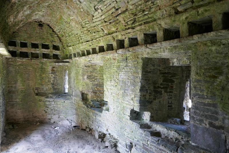 Místnost v přízemí SZ bašty s holubníkem pod klenbou. Klenba nese otisk košatiny.