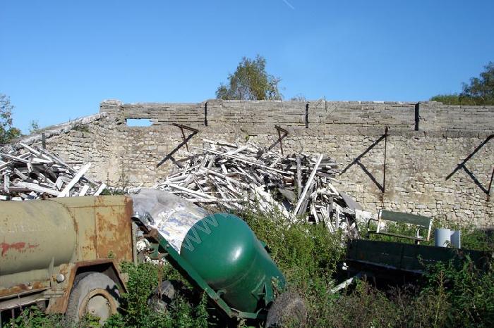 Novodobá vysoká zeď, která obklopuje od severovýchodu hospodářský dvůr
