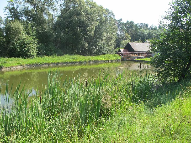 Bývalý mlýnský náhon, dnes rybníček, tvoří severní hranici tvrzištního areálu