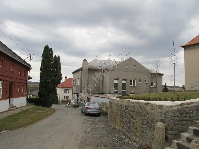 č.p.1- dům s červenou sřechou (tvrz?) od kostela sv. Jakuba Většího