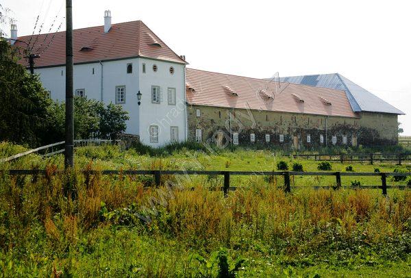 Areál dvora s tvrzí (vlevo) od jihozápadu