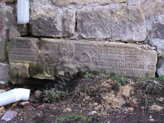 Původní nadpraží s erbem Jindřicha Berky z Dubé, dnes druhotně využité jako armatura jihozápadního nároží budovy