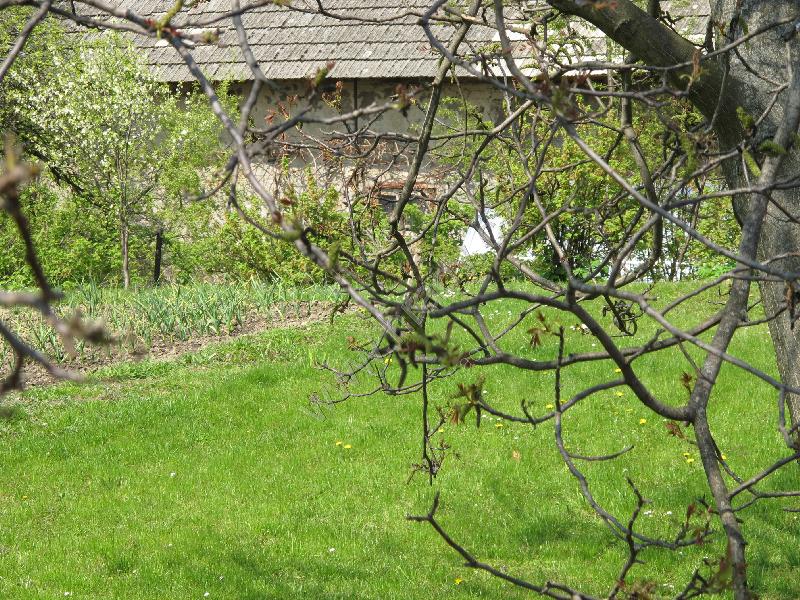 soukromá zahrada v jádře tvrziště /snad/, vpravo budova bývalého statku