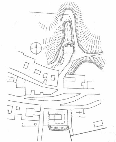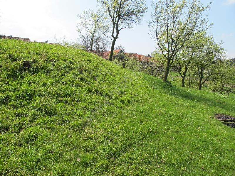 Předěl mezi tvrzištěm a plošinou /dnes louka/ na jihu