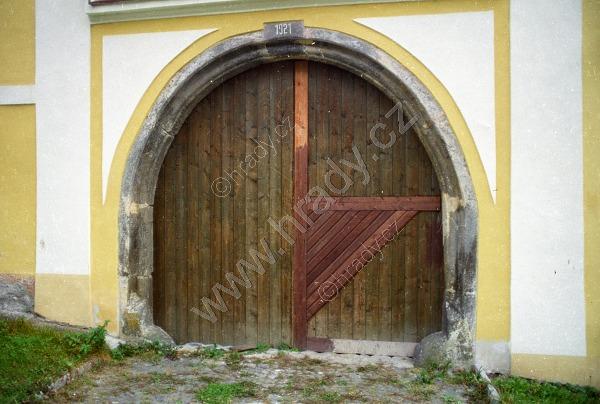Ostění z bývalé tvrze Hrádek u Husince v obci Dvory č.p.11