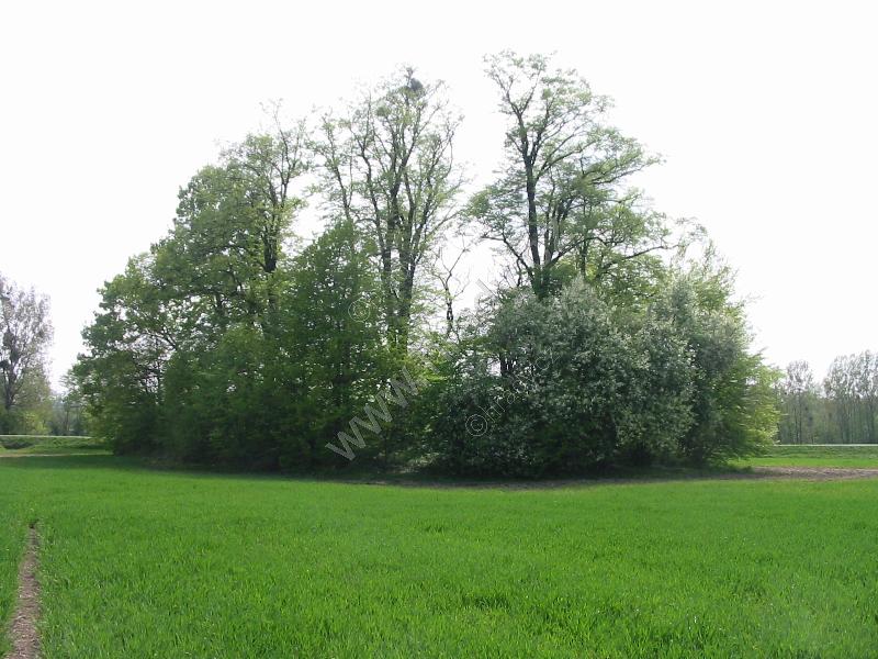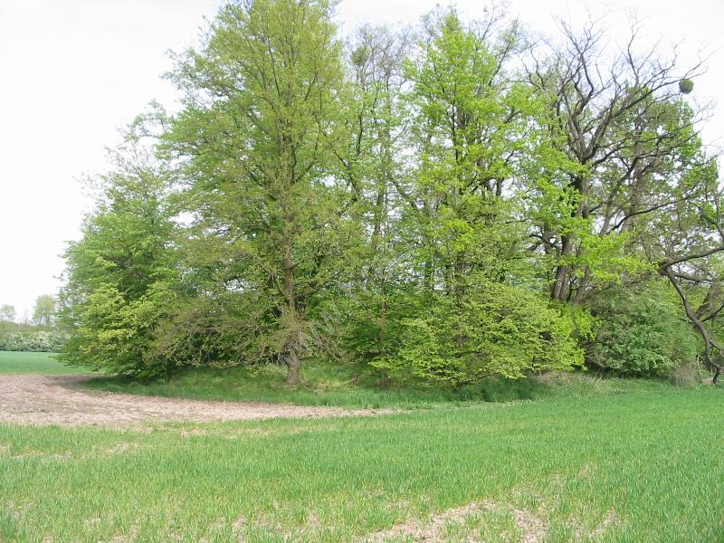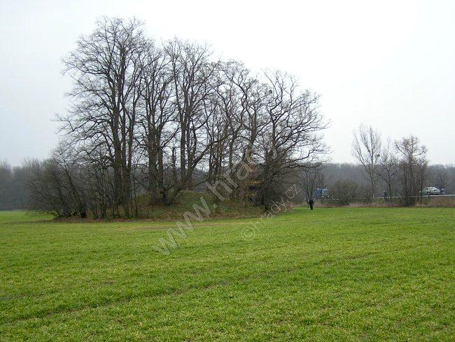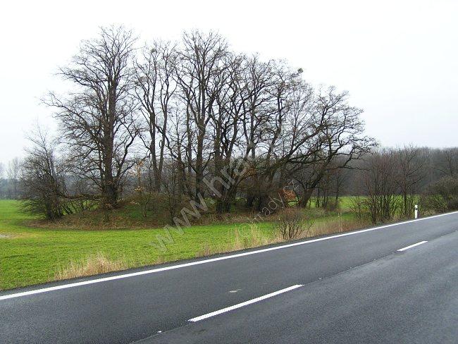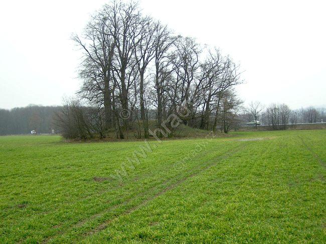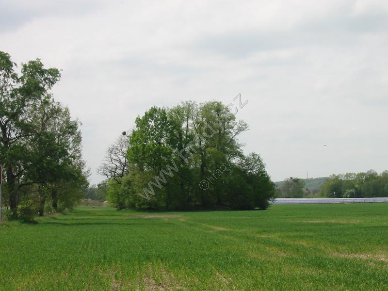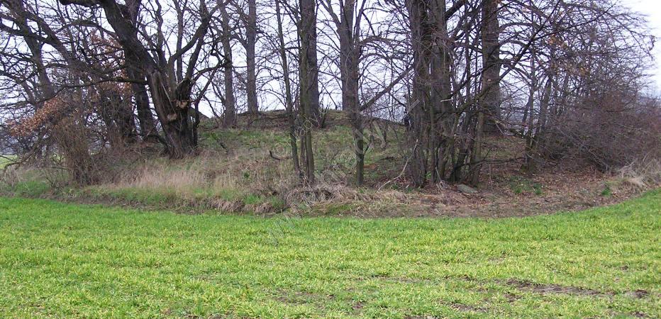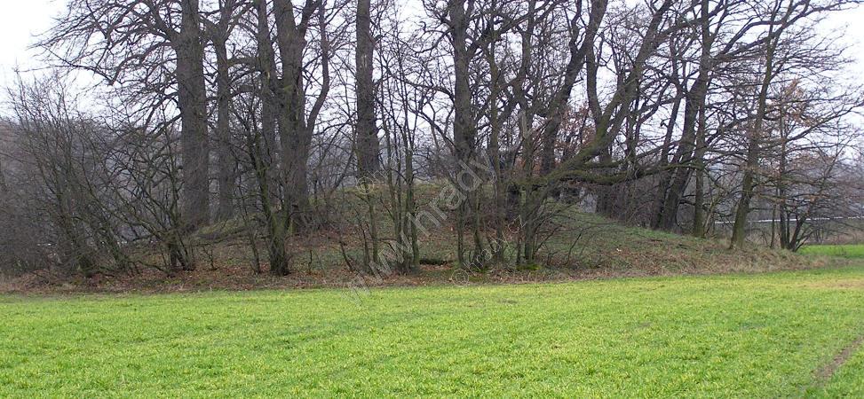 pohled od severu na vyvýšený pahorek,na jehož vrchu se nachází tvrziště