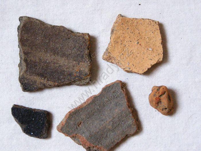 Ukázka střepů keramiky nalezené na lokalitě DSO Doubrava - Nivy