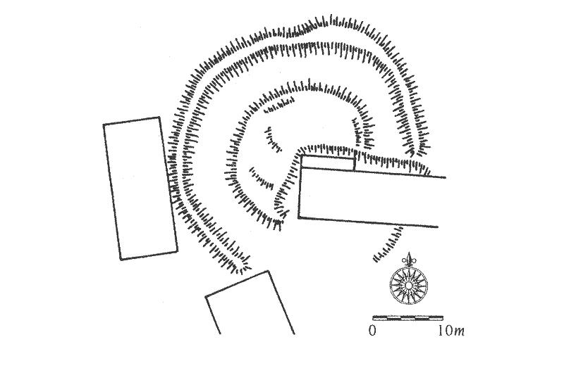 Kasejovice (Plzeň - jih), náčrt zbytků tvrziště podle J. Krčmáře z r. 1997. Kresba J. Úlovec.