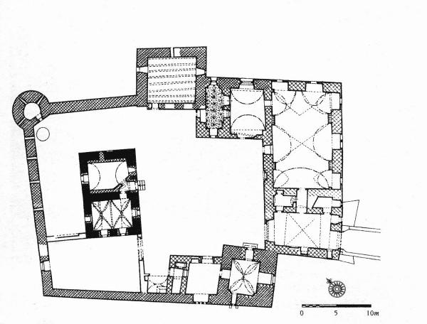 Půdorys přízemí tvrze s analýzou podle F. Kašičky